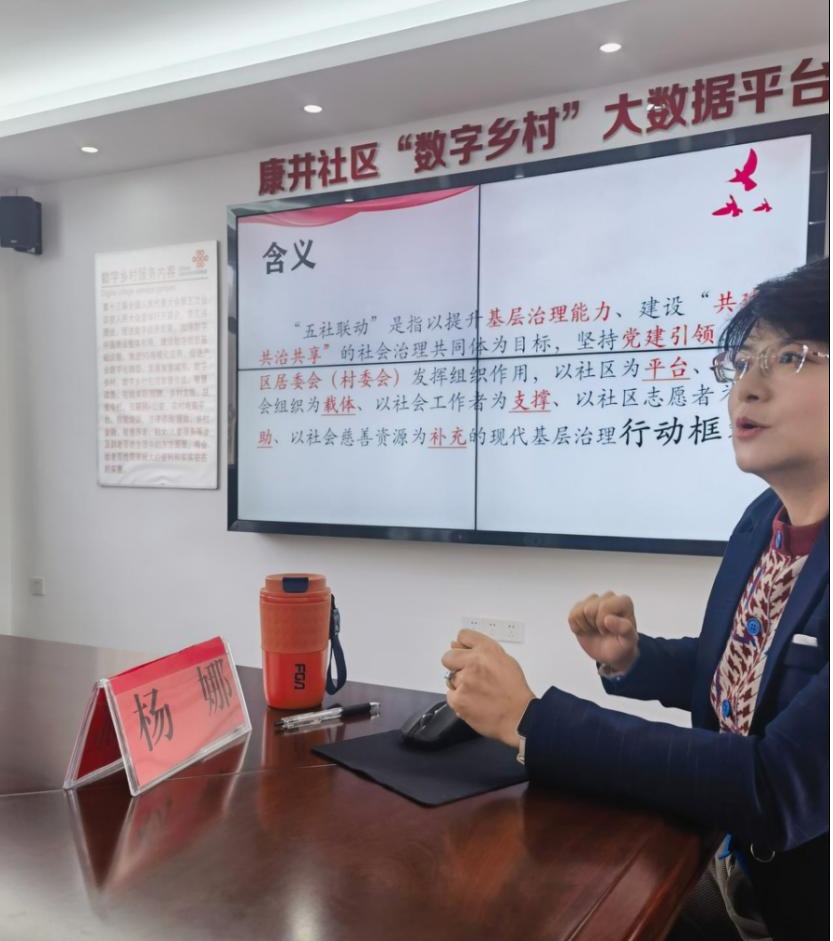 2023年11月22日,玉溪师范学院法学院社会工作专业的杨娜老师前往康井社区,为社区社会工作职业技能发展提供智力服务。作为“五社联动”中的专业社会工作者,她充分发挥自身优势,将研究成果落实到社工一线,助力基层社会治理工作。