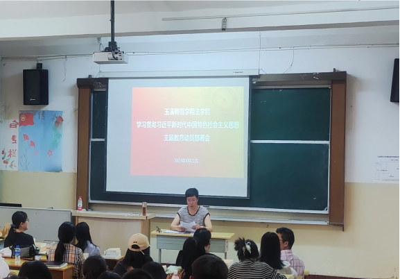 4月21日下午,法学院在第四教学楼101阶梯教室召开深入学习贯彻习近平新时代中国特色社会主义思想主题教育动员部署会。法学院全体师生党员参加会议。会议由法学院党委副书记冶联凤主持。