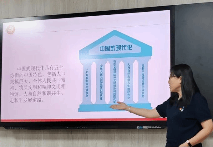 比如,李文琴同学以“中国共产党领导是中国特色社会主义最本质的特征”为主要内容,从党的全面领导的科学内涵,为什么加强党的领导和怎样加强党的领导三个方面展开分享。党的领导是中国特色社会主义最本质的特征,要坚决维护党中央权威和集中统一领导,并切实落实到行动中。左宗燕同学分享了中国式现代化是强国建设、民族复兴的唯一正确道路的学习内容。中国式现代化在于中国共产党的领导,要全面理解中国式现代化的科学内涵,推动中国式现代化。李云彬同学以小视频为切入,生动形象地讲述了新时代坚持和发展中国特色的重点内容,激起了各位党员同志的注意力,引发了互动。刘永江同学分享了关于全面建设社会主义现代化国家新征程的学习内容,从全面建成小康社会和两步走战略展开,层层递进,理解深刻。杨春艳同学分享的是“以人民为中心”的专题,围绕专题内容进行讲解,内容较为丰富;同时,她结合自身经历以及家乡环境的变化展开阐述,使社员们更好地了解到国家政策惠及人民群众的重要性。应筱箐同学则结合法学专业学习,呈现了依法治国在我国的运用,并通过“法制”和“法治”的对比让社员们更清楚地认识到二者的转变及与法治中国建设的关系。每位社员分享后,其他成员根据其理论内容讲解的深度、广度和启发性,与案例结合的紧密度,以及PPT的制作等进行点评。通过共学交流,社员们对习近平新时代中国特色社会主义思想不再只停留在书本上,而是通过去研读、去观察、去感悟、去实践,努力做到内化于心,外化于行。