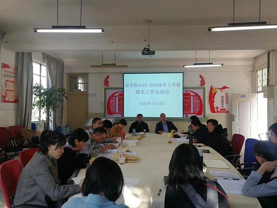 1月12日上午,法学院在4教202会议室召开2019-2020学年上学期期末总结会。会议由法学院邱国成副院长主持。法学院全体教职工参加了会议。