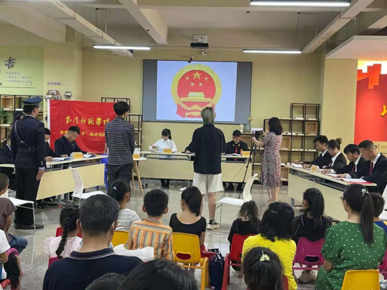 此次活动邀请玉溪师范学院法学院青年“暑期三下乡”学校立项重点团队“新《未成年人保护法》宣传实践团”以模拟法庭的形式开展普法宣传社区教育活动。以法学教育中的“模拟法庭”来开展法律社区宣传教育工作是法学院法学与社会工作专业的融合创新。为让新修改的《未成年人保护法》“进社区、进家庭、到身边”,学院法学和社会工作专业的同学紧密结合学院、专业特色,活动通过角色扮演、模拟实践、案例分析的教学方式向参与本次活动的社区儿童及其家庭宣传2021年新颁布的《中华人民共和国未成年人保护法》。该法案是为保护未成年人身心健康,保障未成年人合法权益,促进未成年人德智体美全面发展而制定的法律,包括家庭保护、学校保护、社会保护、网络保护等内容,这是一部尊重未成年人、倾听未成年人的新法。