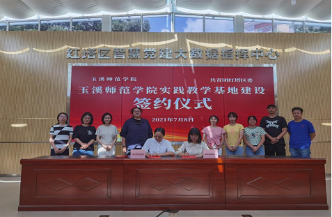 2021年7月8日下午,玉溪师范学院法学院和共青团红塔区委和实践教学基地建设签约仪式在红塔区党群服务中心举行。双方以推动社会工作专业化发展,共建学生见习实习基地作为主要内容,在培训、实践、研究、社工服务等领域开展多项合作。法学院党委副书记、社会工作专业负责人叶宏和共青团红塔区委书记孙旭签署了合作协议书。