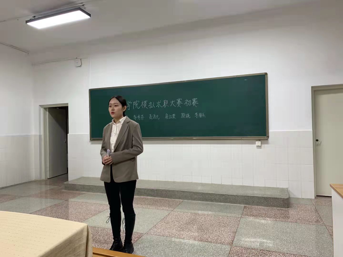为了帮助广大同学树立职场求职意识,提高自身的综合素质,让广大同学提早对企业的招聘和求职有一个真实、客观的了解,为同学们在将来求职就业中提供宝贵的经验,并合理安排好自己的大学时间,制定好自己的人生规划。2021年11月9日下午5点,法学院根据“铭鼎杯”大学生模拟求职大赛的通知于四教202室举办了学院模拟求职、简历设计大赛。法学院党委副书记叶宏老师、辅导员窦超老师、徐晓璐老师出席本次大赛并担任评委,法学院六名同学参加了本次模拟求职比赛。