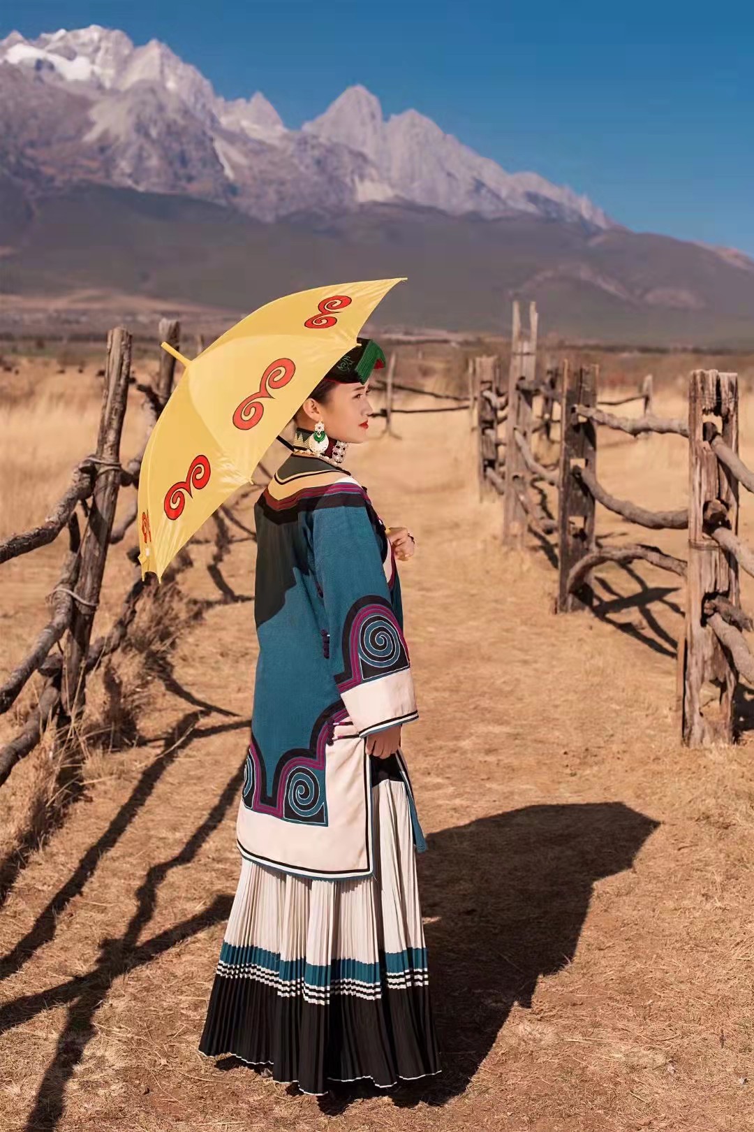 我的外公是个非常传统的彝族男人,那时候他头上还留着“天菩萨”(天菩萨是彝族男子的一种发型),无论刮风下雨还是艳阳高照,他总是披着一件他自己擀制的羊毛披毡。他也给我做过一件小小的披毡,披上上很暖和。那时候舍不得买九块九就能买得到的雨伞,我上学的时候如果遇到下雨天就要披着小披毡去学校。放寒暑假在家里的时候,我也会披着它和我外公一起去放羊放牛。