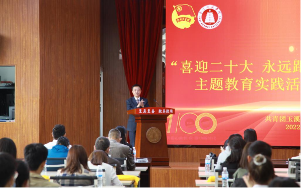 2022年5月4日,玉溪师范学院 “喜迎二十大 永远跟党走 奋进新征程”主题教育实践活动暨五四表彰大会在学生会堂召开。校党委副书记葛平对受到表彰的先进集体和个人表示祝贺,对全校共青团员和青年学生致以节日问候。