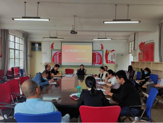 2022年5月9日下午14:30,在法学院第四教学楼202会议室召开2021-2022学年下学期期中教学工作会议。会议由副院长叶宏主持,全体教职工参会。