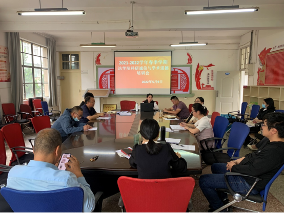 根据《玉溪师范学院校风教风学风整顿工作方案》要求,为进一步加强教师学术道德建设,2022年5月9日下午,法学院组织全体教师开展科研诚信与学术道德专题培训。