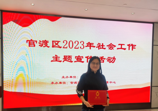 在官渡区社区治理创新创享中心,教师们参加了官渡区2023年国际社工日特别活动“社会工作主题宣传”,会上,叶宏老师获得官渡区民政局颁发的官渡区专家库专家聘书。