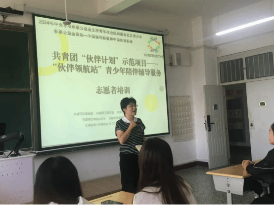 2024 年 10 月 21 日下午,共青团“伙伴计划”示范项目介绍会暨志愿者培训会在玉溪师范学院隆重召开。该项目是2024 年中央专项彩票公益金支持青年社会组织服务社区青少年的为期一年的项目,项目名称为“伙伴领航”青少年陪伴辅导服务。法学院 190 余名学生参与这个项目。未来,他们将在葫田社区针对 70 名困境儿童开展服务。