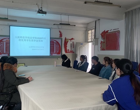 12月21日下午16:00,法学院于四教二楼会议室举行了2020年红塔优秀学生奖学金答辩。经过前期个人申报和学院审核,共有七名同学参加此次答辩。法学院党委副书记叶宏和辅导员窦超出席了此次会议。