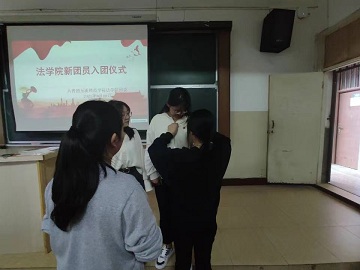 为进一步加强共青团员组织意识教育,增强共青团员的组织荣誉感,凝聚团组织活力,规范入团程序和仪式,2021年9月29日下午六点法学院于四教102室开展入团仪式。
