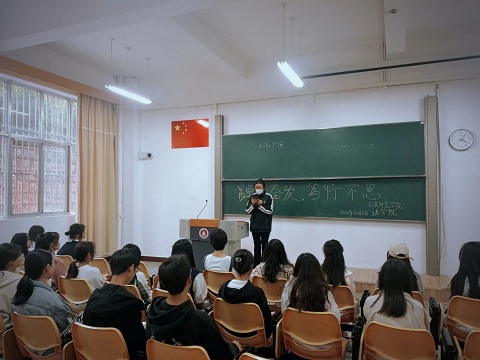 为深入学习贯彻党的二十大,引领我院团学干部积极投身全面建设社会主义现代化新征程,法学院于2022年11月5日下午15:00在14教102组织“踔厉奋发、笃信不息”二十大报告学习交流座谈会。此次座谈会由法学院团委学生会主席李林霏担任主持人,法学院团委学生会全体学生干部参会。