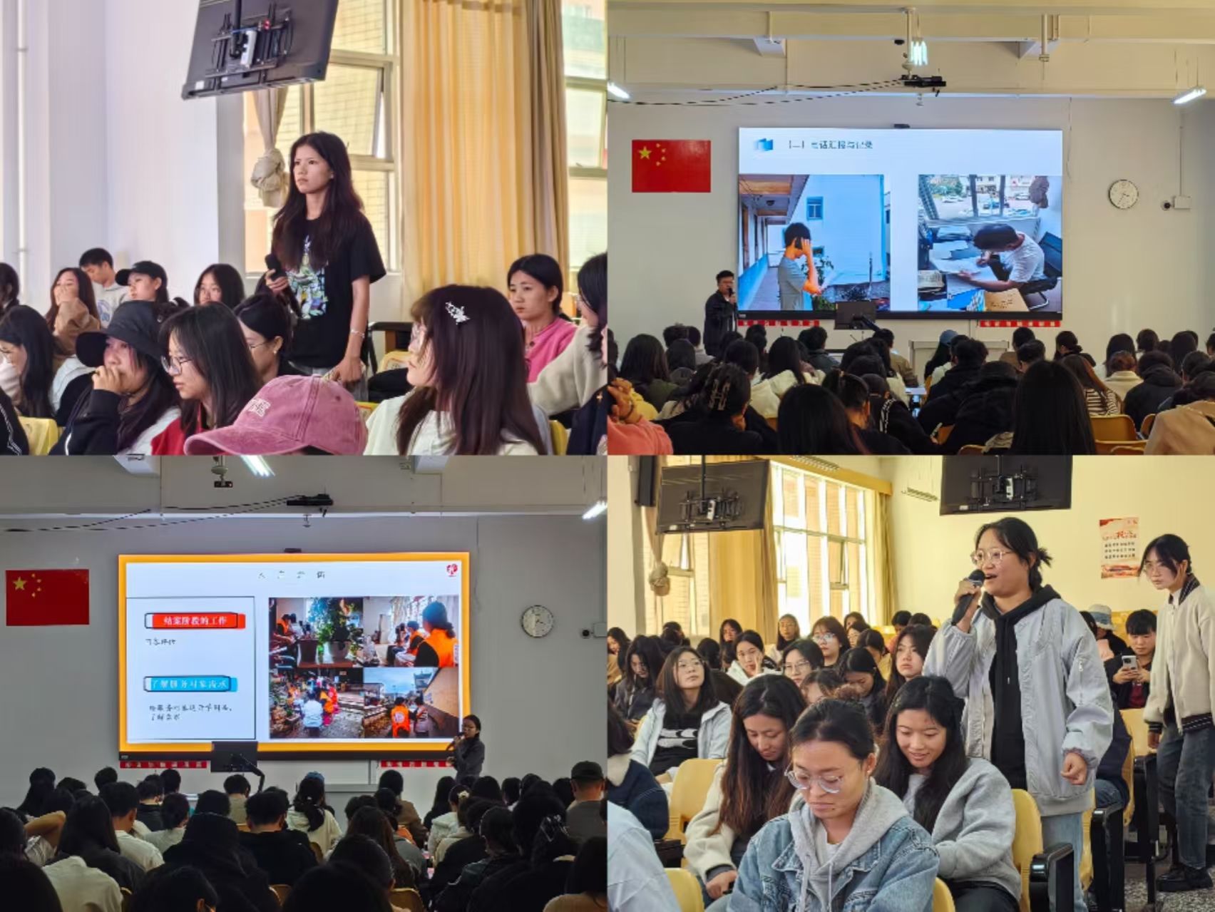 此次分享会,21级社会工作班的同学们结合自身经历,通过视频形式,从实习内容、实习体会与收获等方面进行了分享。23级社会工作专升本的同学们则采用现场PPT展示及答疑的方式,分享了实习过程与经验。他们以详实的数据和案例,展示了在实习岗位上的成长轨迹。他们均表示,在实习中收获丰富,于实践里接触到课堂之外的知识,拓宽了认知边界,且将课堂所学专业价值、理论与技术应用于社会实践,有效内化了社会工作专业价值,提升了理论运用能力,增强了社会工作技巧运用水平。